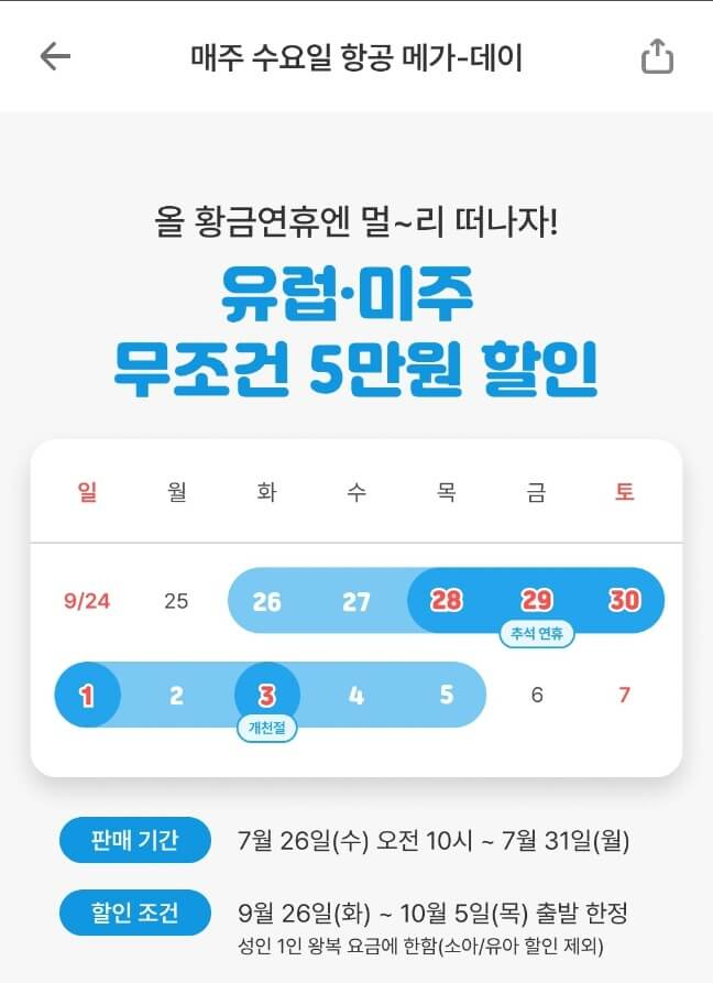 이 글을 보는 많은 분들이 비행기 표는 미리 예매하는 방법이 가장 싸다고 알고 계실 거예요. 실제로도 일찍 예매하는 경우 얼리버드 특가로 엄청 저렴하게 항공권을 예매할 수 있는데요. 사실 이런 방법이 아니고서야 50%씩이나 할인을 받을 수 있는 경우는 드물기 마련이죠. 그리고 그런 기회가 있어도 국내선에 한정되거나 일부 국가와 항공사로 제한이 되는 경우가 많았습니다.