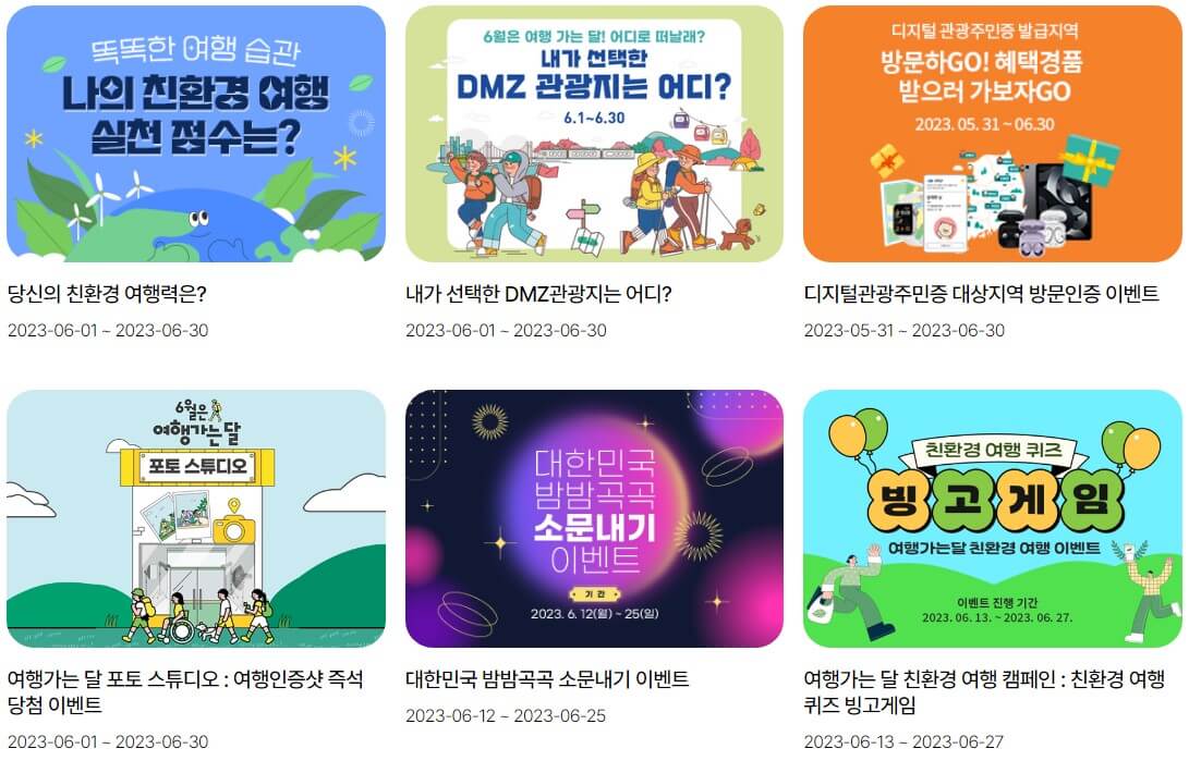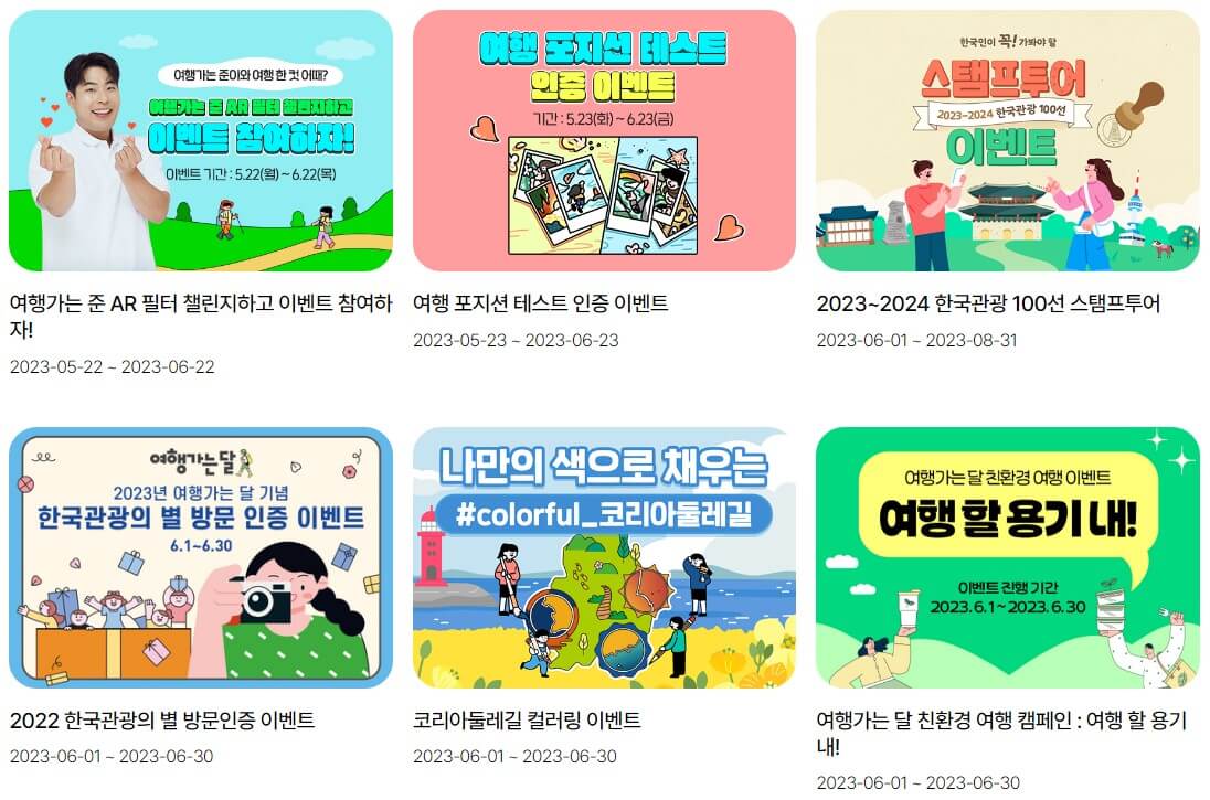 2023년 6월 여행가는달 캠페인에서는 국내여행을 통해 참여할 수 있는 다양한 이벤트를 진행하고 있습니다.
